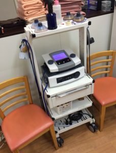 治療内容は『マイクロ波』と呼ばれる微弱な電流を流す治療器具を使い、組織の修復を早め、炎症反応の抑制と痛みの軽減させます。